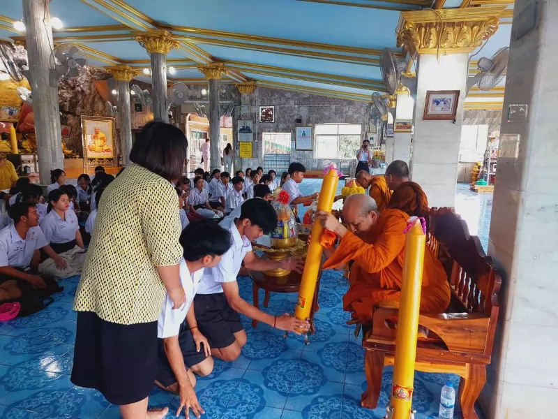 นำถวายตามวัดต่างๆรอบโรงเรียน ณ วัดถ้ำเสือ, วัดโภคาจูฑามาตย์, วัดกระบี่น้อย