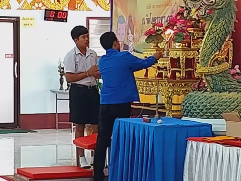 นำเทียนพรรษาและทำเงินทำบุญที่ได้รับจากนักเรียน ครู บุคลากรในโรงเรียนที่ร่วมกันทำบุญ